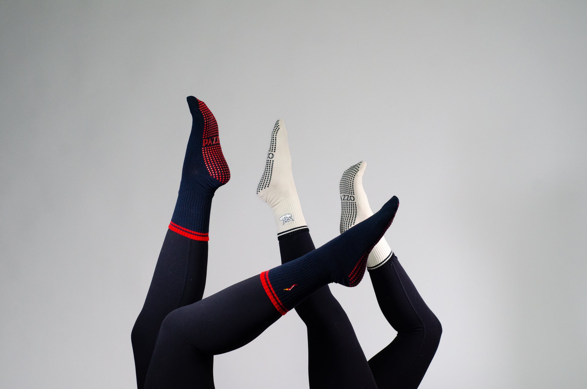 Elevate your studio style with subtle edge and Italian charm. Our Cornicello Double Stripe Pilates Grip Socks feature a sleek, minimalist design with thin double stripes at the ankle and an embroidered cornicello pepper—the iconic symbol of protection, luck, and fiery energy.